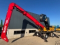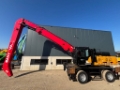 This Sany SMHW48G5 is equipped with a 6 cilinder water cooled turbo charged Cummins L9 (252kW) diesel engine with just 796 working hours on the service meter. 9.6m boom and 7.5 meter stick resulting in 17.5 meter reach with grab. Camera system on stick, side and rear camera’s, HD undercarriage, full rubber tires, cabin protection, microphone, additional work lights, operator manual, airco, radio, check valves, central lubrication, joystick steering, Kawasaki pump etc.