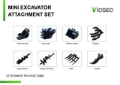 Quick Coupler, Rake, Grabber, (1) 8 in Bucket, (1) 32 in Bucket, Auger w/ (1) 12 in Bit, (1) 8 in Bit, Ripper