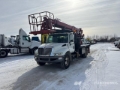Located in Lane 21 Spot 76, International MaxxForce DT Diesel 225 hp Engine, 2008 US EPA Label, 11921 Engine hrs, Allison 2500 Automatic Transmission, 10000 lb Front Axle, 19000 lb Rears, 29000 lb GVWR, 10R22.5, Spring Suspension, 188 in Wheelbase, 500 lb Capacity, Rear Mounted, One-Person Telescopic Boom, Flatbed, Material Handling Jib, A-Outriggers, Rear Outriggers, Cordless Remote Control, 195 ft x 98 in Bed