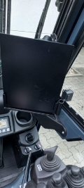 Endkundenbemerkung: integrierter Seitenschieber, Arbeitsscheinwerfer vorne und hinten, blaues Warnlicht nach hinten gerichtet, Blitzleuchte auf dem Fahrerschutzdach, akustisches Rückfahrsignal, SE-Reifen abriebfrei, Panoramaspiegel, Minihebel, Fahrtrichtungsumschalter in der Armlehne, Hupe in der Armlehne, Grammer MSG 65, breites Bremspedal, Vollkabine mit Heizung, Wischer vorne und hinten, Klemmbrett, Schlüsselschalter, CE-Zertifikat, Batteriekapazität 72%, Sonderausstattung: SE-Bereifung abriebfrei, Minihebel, Fahrtrichtungsumschalter in der Armlehne, blaues Warnlicht nach hinten, akustisches Rückfahrsignal, Grammer-Sitz MSG 65, Arbeitsscheinwerfer vorne und hinten, Panoramaspiegel, Hupe in der Armlehne, Klemmbrett, Schlüsselschalter, SpecialEquipment: 3. Ventil, 4. Ventil, Arbeitsscheinwerfer hinten, Arbeitsscheinwerfer vorn, Dachabdeckung, Heizung, Vollkabine, CE Zertifikat, Nicht kreidend, Innenspiegel, Rundumleuchte, Scheibenwischer, Einpedal, OtherAttachments: Sideshift
