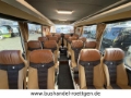 Standheizung, Holzfußbodenoptik, KlimaAnlage, Tische, Vorhänge, Gepäckablagen, Gepäcknetze, Düsenbelüftung, Leselampen, Doppelverglasung, Fußrasten, Küche, Kühlschrank, Kaffeemaschine, Mittel-WC, Kopf-Ledereinsätze, Reiseleitermikrofon, Fahrermikrofon