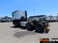 Construction-site filter, Engine version, Euro III, Cyclone filter for coarse dust, Noise encapsulation in accordance with ECE NGL, Wheel arrangement 6x4, Mercedes PowerShift 3, Transmission oil cooling, Front axle 8.0 t, Front axle, straight version, Rear axle, crown wheel 300, planetary, 13.4 t, Leaf suspension, rear axle, Drum brakes on front and rear axle, Water-type secondary retarder, Frame overhang 750 mm, Wheelbase 3300 mm, Main tank, left, Tank, 430 l, left, 735 x 700 x 1000 mm, aluminium, Second tank, 430 l, right,735 x 700 x 1000 mm,alu., Fifth-wheel coupling ex factory, Fifth wheel coupling height = 190 mm, Fifth wheel coupling, manually lubricated, Fifth-wheel coupling, heavy-duty, 2, Jost JSK 38C, Weight variant 33.0 t (8.0/13.0/13.0), Vehicle, for left-side traffic, L-cab ClassicSpace, 2.30 m, tunnel 170 mm, L-cab, Cab width 2.30 m, Cab tilting mechanism, mechanical-hydraulic, Windscreen, tinted, with filter band, Front mirror, heated, Air horn, Locking system, with central locking, Extended central locking, Luxury bed, bottom, Sunblind, side, driver's side, Drawers, under bed, Stowage flaps, above windscreen, Air conditioning system, Driver's suspension seat, standard, Electronic braking system with ABS and ASR, ABS, disengageable, Reversing buzzer, Fog lamps, LED daytime running lamps, LED tail lights, Lane Keeping Assist, Attention Assist, Airbag, driver, Cruise control, Grounder