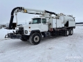 Located in Lane 9 Spot 24, Mack E7 6 Cylinder Diesel Engine, Mack T2180 18-Speed Manual Transmission, 22927 lb Front Axle, 45854 lb Rears, 65915 lb GVWR, Aluminum Front Wheels, 425/65R22.5 Front Tires, 11R24.5 Rear Tires, Double Frame, Camelback Suspension, 258 in Wheelbase, Steel Debris Tank, Front Hose Reel, Fresh Water Tank, Hydraulic Lift Tailgate, Hydraulic Tailgate Locks, 20 ft Boom, 8 in Suction Hose, Blower