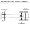 Achslast - Messeinrichtung, Achslast Vorderachse 9,0 t, Airbag Fahrerseite, Arbeitsscheinwerfer, Audiosystem: CD-Radio (Bluetooth), Auspuff nach unten rechts, Außenspiegel rechts mit Rangierstellung, Bremsanschluss Standard und DuoMatic, CB-Funk, Druckluftanschluss im Fahrerhaus, Druckluftbehälter zusätzlich, Drucklufthorn, Fahrassistenz-System: Bremsassistent (Active Brake-Assist 3), Fahrassistenz-System: Wankregel-Assistent, Federung: Vorderfedern 9,0 t, 3 Blatt, Frontscheibe getönt, Getriebe 12-Gang - Typ: G 330-12, Halter für Fleetboard Dispopilot, Info-Display 12,7 cm mit Videofunktion, Kotflügel 3-teilig, Kraftstofftank: 500 Ltr. Aluminium, rechts, Kühlbox / Kühlschrank, Kühlung verstärkt, Lenkhelfpumpe ungeregelt, Luftansaugung hinter Fahrerhaus, Luftpresser 2-Zyl., Motorbremse verstärkt, Parametrierbares Sondermodul, Rahmenabsenkung mit Balg-Restdruckregelung, Reserverad, Schlussquerträger verstärkt, Sitze im Fahrerhaus: Fahrersitz Schwingsitz Komfort, Sonnenblende außen, Sonnenschutzrollo Seitenscheibe, Fahrertür, Stahlfelgen 11.75x22.5 (an Nachlaufachse), Stahlfelgen 11.75x22.5 (an Vorderachse), Stahlfelgen 9.00x22.5, Steckdose 12V im Beifahrerfussraum, Steckdose 24V im Beifahrerfussraum zusätzlich, Teppichbelag auf Motortunnel, Zweischeibenkupplung, Ölkühler Getriebe